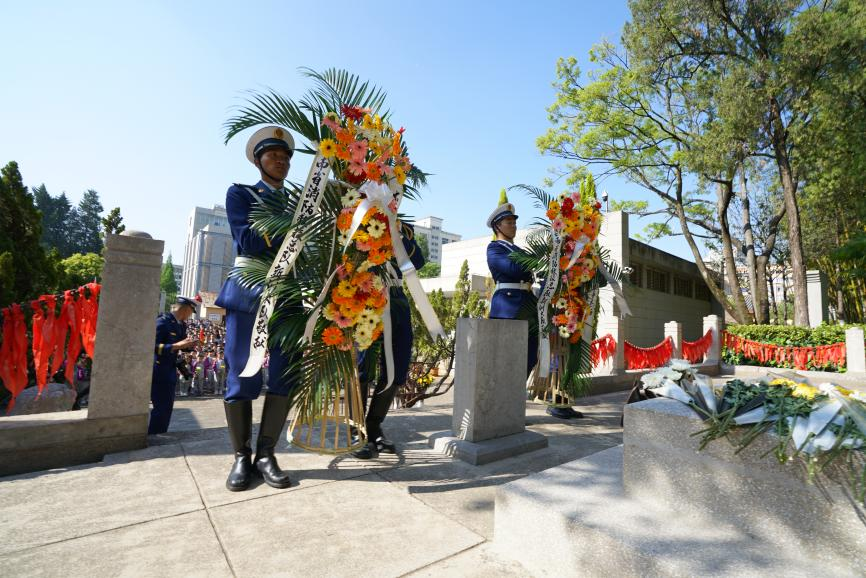 鲜花朵朵,永铭英魂。伴随献花曲,各界代表列队瞻仰了闻一多先生衣冠冢、“一二·一”运动四烈士墓、李公朴先生衣冠冢,向烈士墓和革命烈士纪念碑敬献了花篮和鲜花。