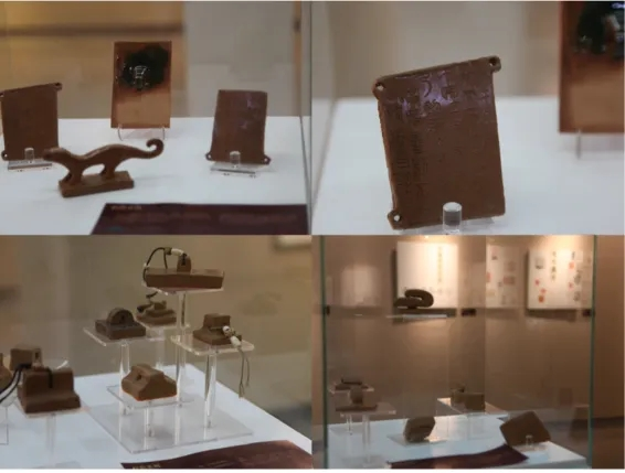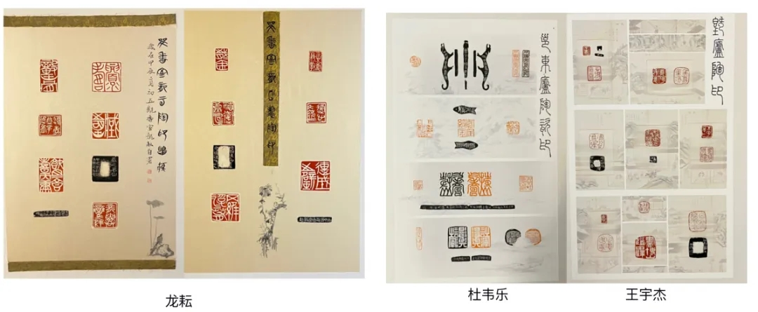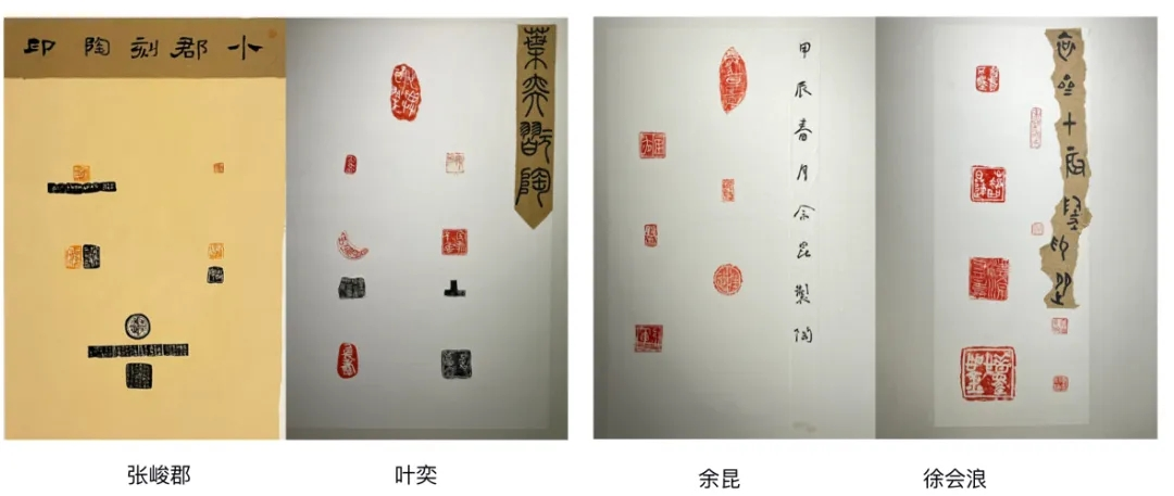 展览展出了来自日本、韩国和全国一线篆刻家的陶印作品以及我校美术学院师生创作的作品,作品集中呈现了当代中青年篆刻家在陶印创作上的基本风格,也展现了我校美术学院师生在陶瓷印领域的探索与成长。展览分为印屏展示和实物展示两个部分,印屏展示主要以作品的印面和边款呈现为主,采用印、拓等多种方式,作品富有设计感。实物展示主要展示印钮的烧制工艺与设计,包括柴烧、瓷泥釉烧、红陶、黑陶等不同形态,造型兼具经典与创意。
