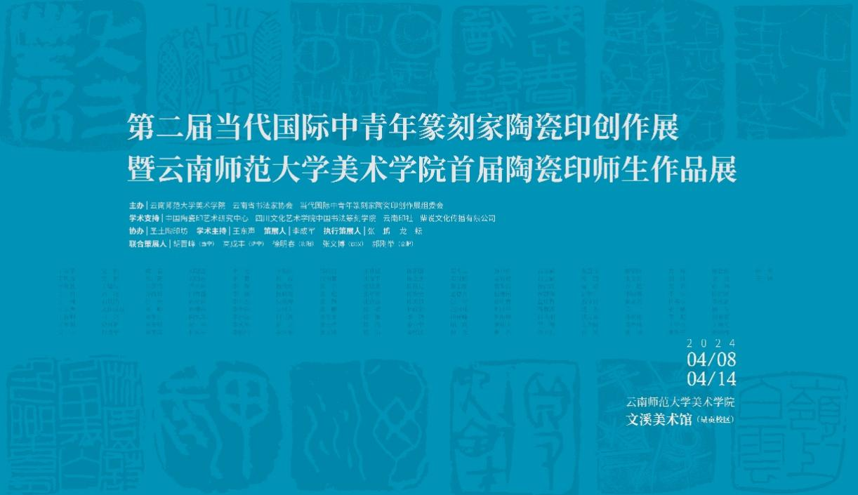 4月8日,由云南师范大学美术学院、云南省书法家协会和当代国际中青年篆刻家陶瓷印展组委会共同主办的第二届当代国际中青年篆刻家陶瓷印展暨云南师范大学美术学院首届陶瓷印师生作品展在我校文溪美术馆开展。中国陶瓷印艺术研究与创作中心主任李成军,云南省书法家协会主席杜建民、秘书长马玉梅、驻会书法家赵月秋、楷书委员会委员盛元靖以及我校美术学院书记包绍红、院长戴杰和师生代表参加了开幕式,开幕式由书法系系主任张鹏主持。