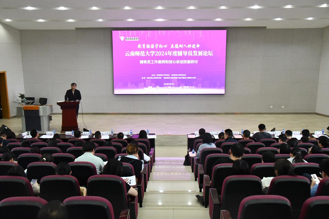 4月10日,我校“教育报国守初心 立德树人担使命”2024年度辅导员发展论坛在呈贡校区举行。各学院(学部)党委副书记、辅导员发展中心辅导员素质训练营导师和学员及全体辅导员参会。