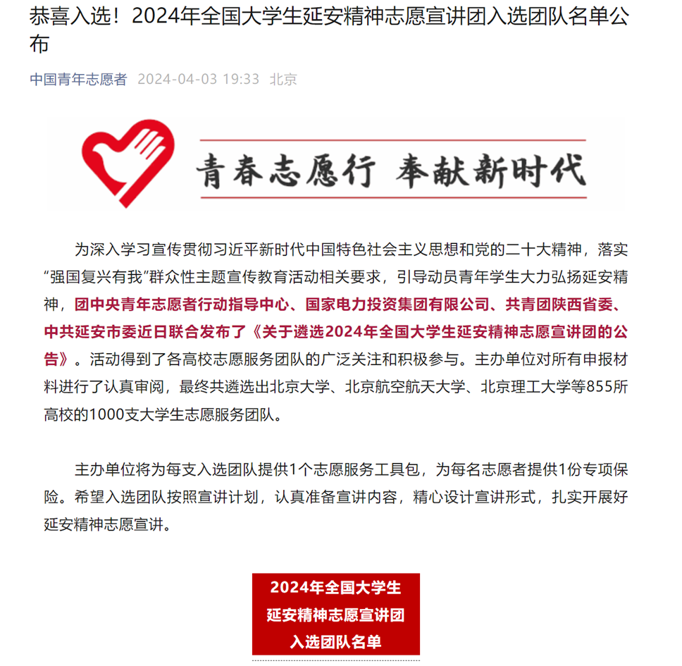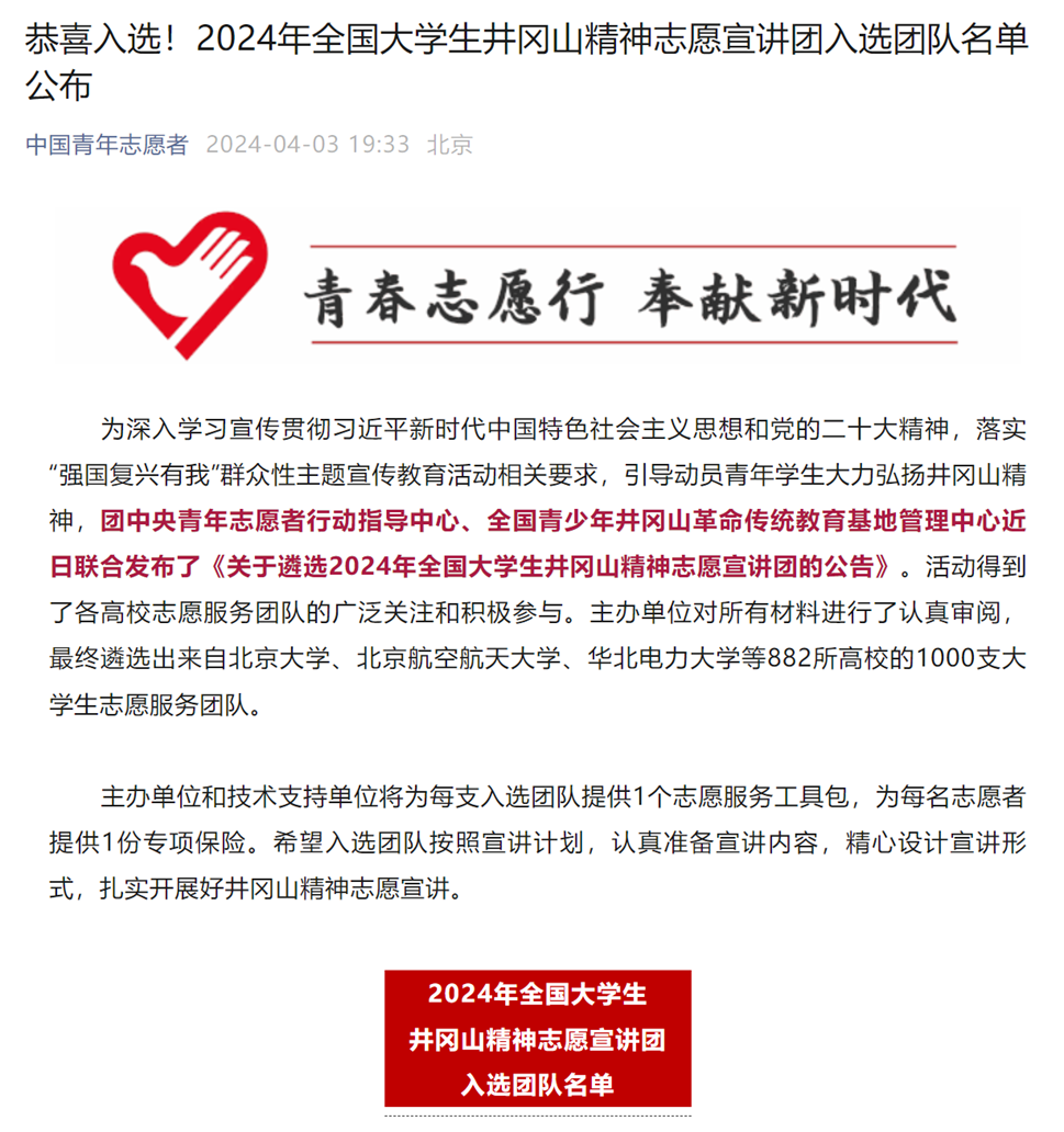 近日,我校教育学部“青声理论宣讲团”、马克思主义学院“星梦青语志愿宣讲团”分别入选2024年全国大学生延安精神志愿宣讲团、2024年全国大学生井冈山精神志愿宣讲团、2024年全国大学生“两弹一星”精神志愿宣讲团。