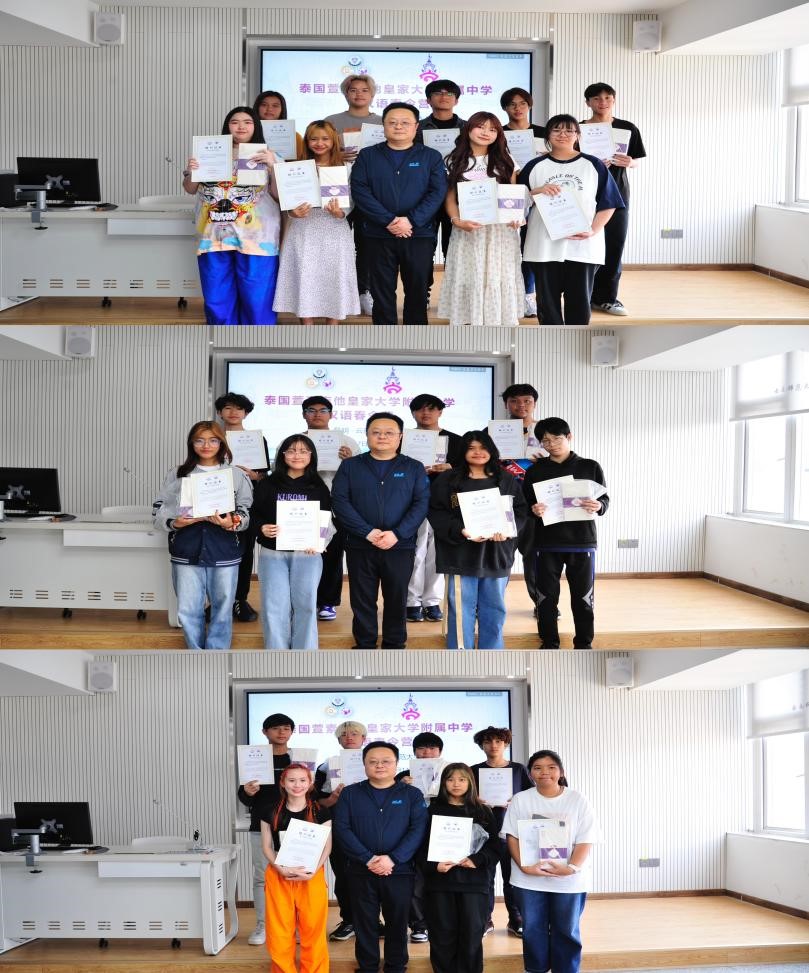 汉语国际推广师资培训基地(昆明)常务副主任沈毅,泰国萱素南他皇家大学附属中学领队教师张宏宾、鹿美晨以及24名泰国高中学生参加了结营仪式。