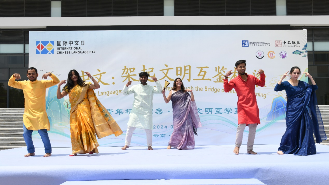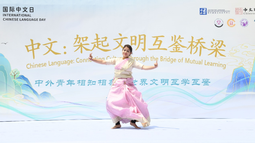 开幕式上,大家一同欣赏了中外学生文艺展演。正在参加2024年“汉语桥”上合组织国家青年学生春令营的印度学生们也来到了现场,演唱了中文歌曲《在那东山顶上》,并带来了一段独具特色的舞蹈表演。他们将中国古典舞技术技巧有机融入印度传统舞蹈之中,生动展示了中印文化交融之美。