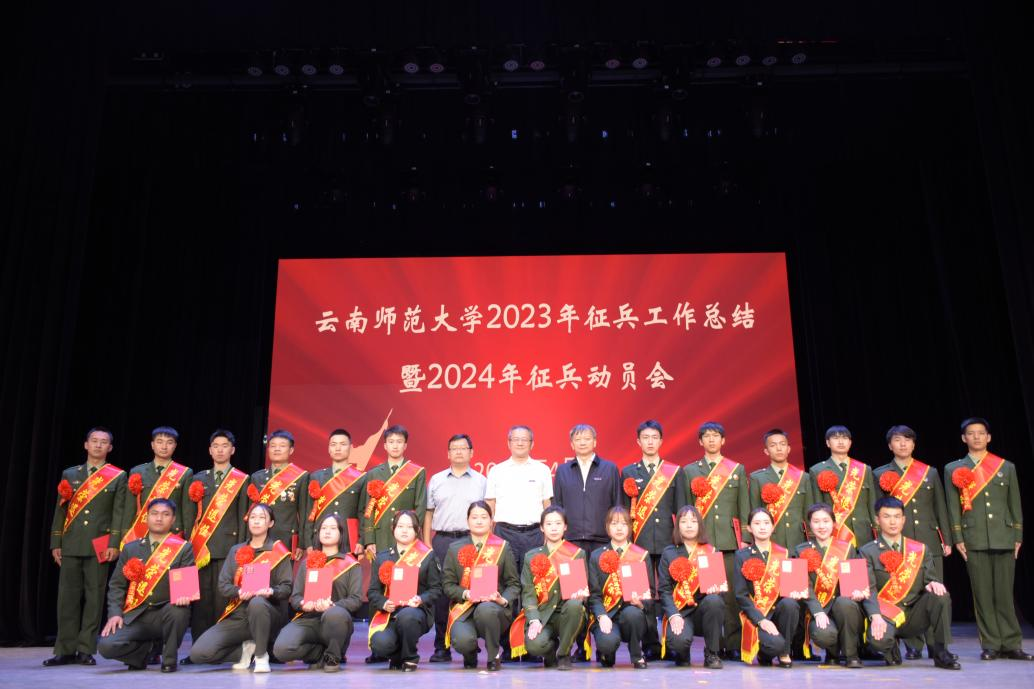 为进一步树牢大学生国防意识,鼓励广大青年学生积极响应国家征兵号召,高质量完成2024年度秋季征兵工作,4月25日下午,我校在呈贡主校区明德楼演播厅召开2023年征兵工作总结暨2024年征兵动员会。校党委书记张祖武、党委副书记李宏、副校长甘健侯,学校征兵工作领导小组成员单位主要负责人,各学院(学部)党委书记、副书记、辅导员,全体退伍复学学生及各学院(学部)有参军意愿的学生代表参加大会。