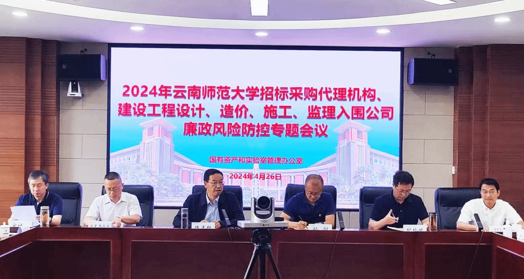 为深入推进清廉学校建设,从严从实防控招标采购各环节存在的廉政风险,加强对招标采购第三方服务机构的规范管理,共同营造风清气正的招标采购环境,4月26日上午,我校召开2024年招标采购代理机构、建设工程设计、造价、施工、监理入围单位廉政风险防控专题会。副校长陈正权,纪委书记、监察专员孙剑,校长办公室、纪检处、审计处、国有资产和实验室管理办公室负责人,代理学校招标采购项目的招标采购代理机构、建设工程设计、造价、施工、监理入围单位负责人和经办人参加会议。