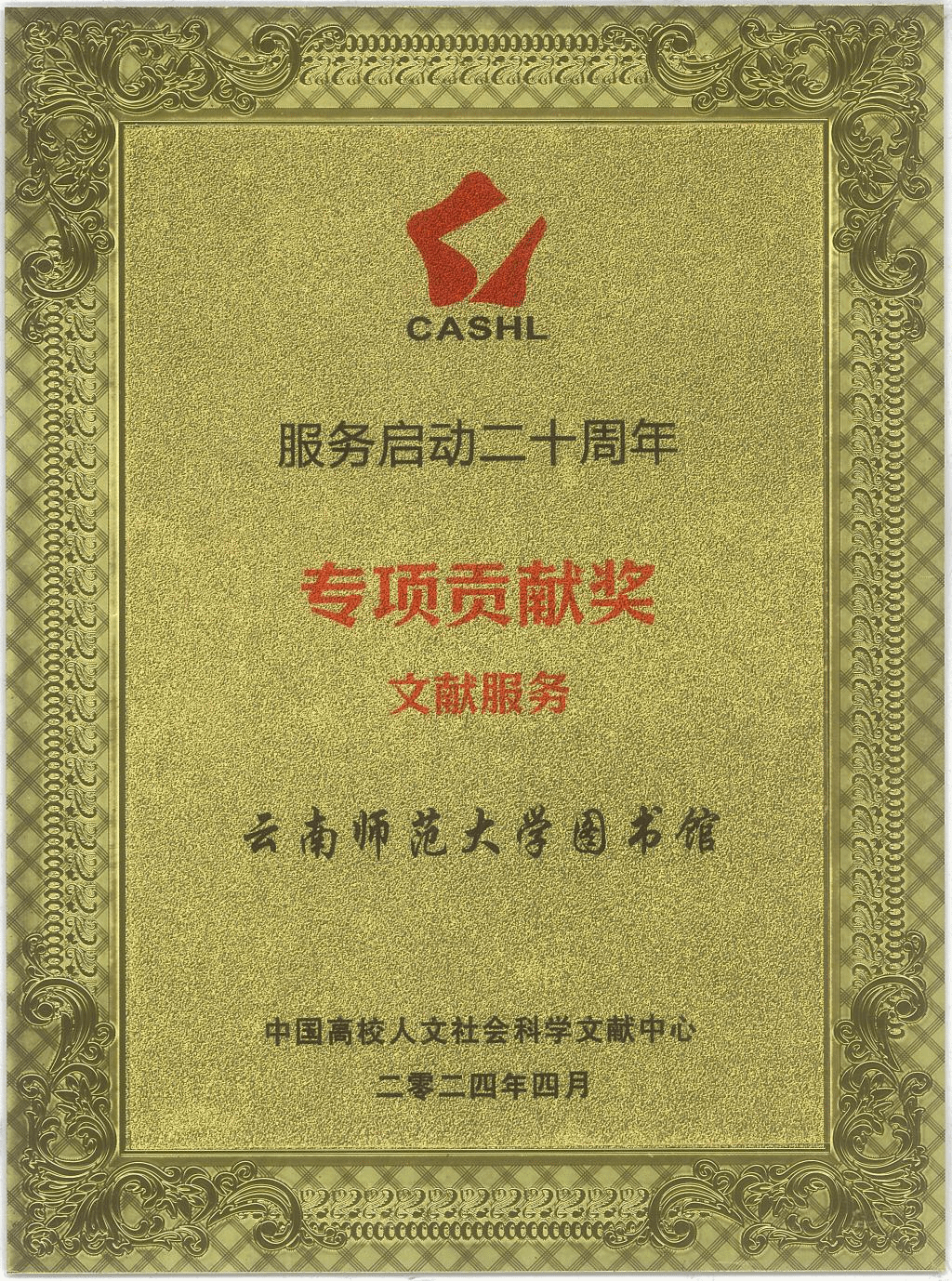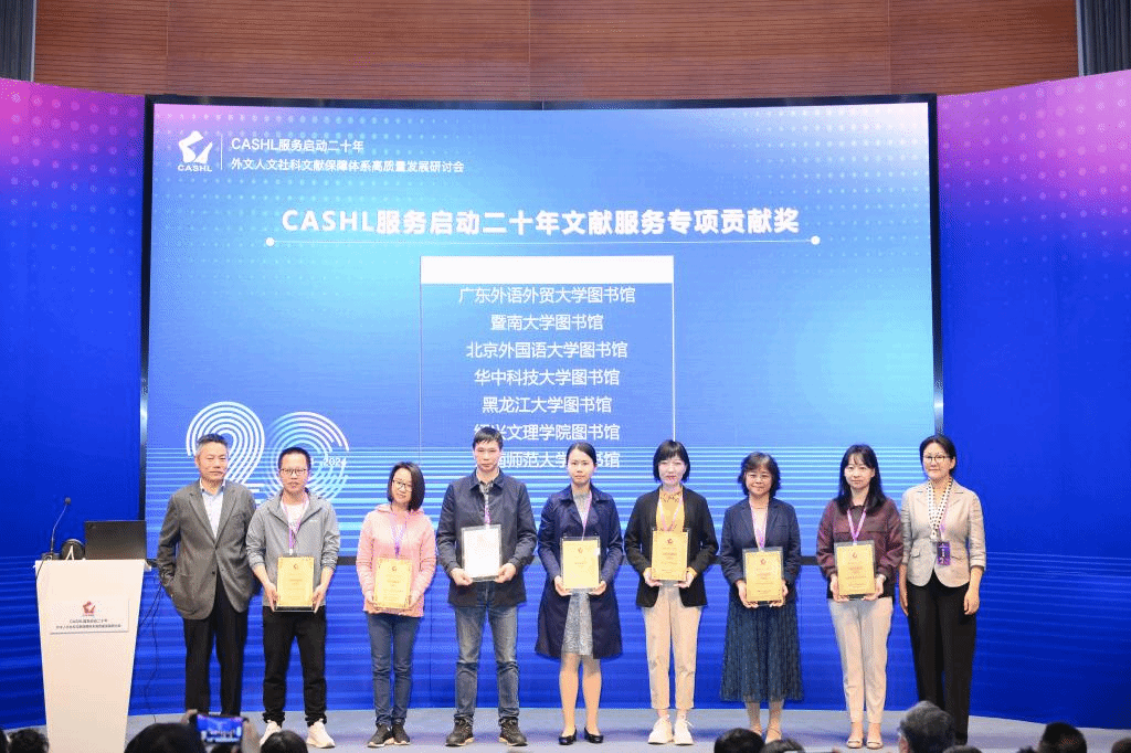 近日,中国高校人文社会科学文献中心(CASHL)管理中心在复旦大学举办“纪念CASHL服务启动二十周年•外文人文社科文献保障体系高质量发展研讨会”,我校图书馆荣获文献服务“专项贡献奖”。