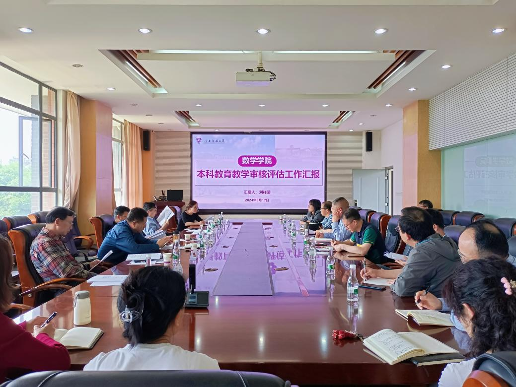 数学学院院长刘祥清汇报了学院本科教育教学审核评估工作情况、存在问题及下一步重点工作安排。数学学院党委书记王源昌对学院的本科教育教学审核评估工作成效、特色亮点进行补充。