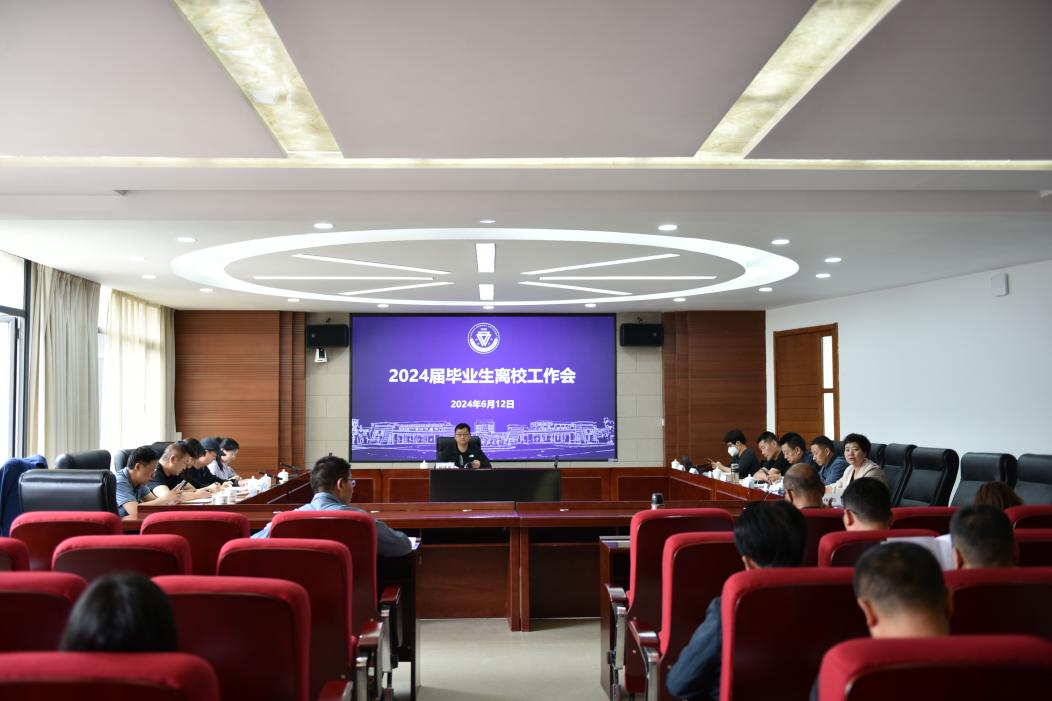 为切实做好2024届毕业生离校工作,确保毕业生文明、安全、有序离校,6月12日下午,我校在呈贡校区行政楼340会议室召开2024届毕业生离校工作部署会。副校长甘健侯,组织部、学生处、教务处、研究生处、财务处、保卫处、校团委、后勤保障服务中心、心理中心、档案馆等相关职能部门负责人,各学院(学部)党委副书记,就业处全体工作人员参加会议,会议由副校长甘健侯主持。