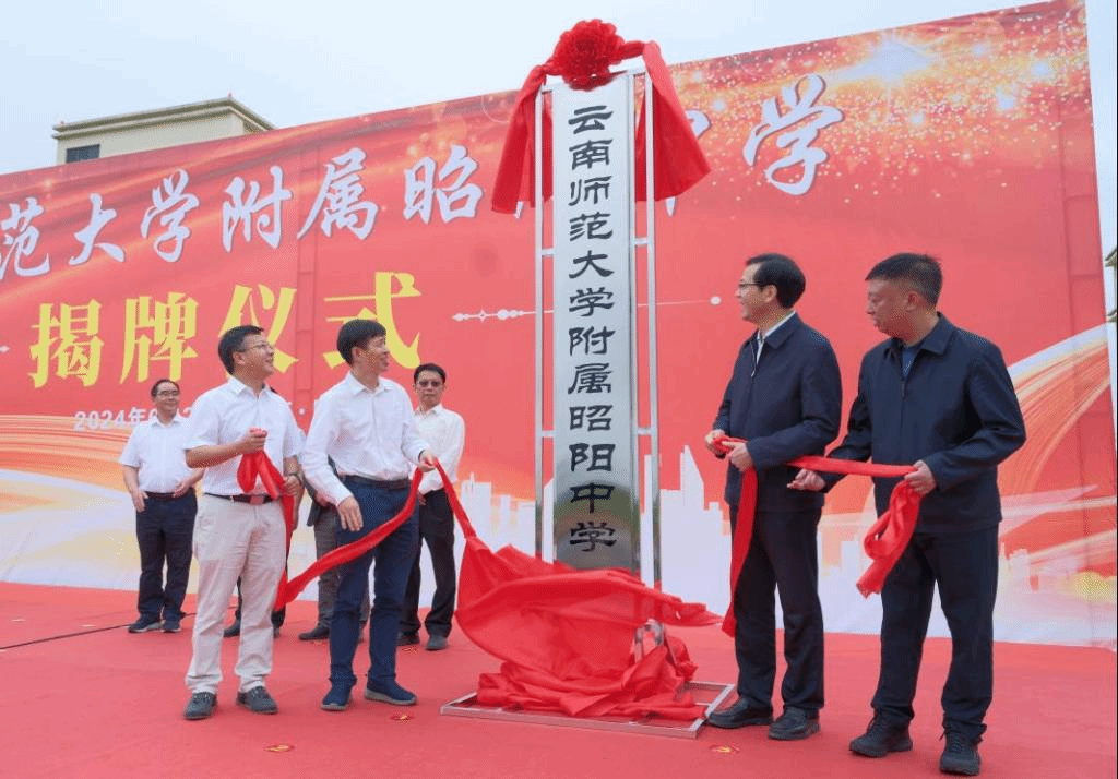 在云南省紧紧围绕“三个定位”、“3815”战略发展目标及教育高质量发展三年行动计划,加快推进教育强省的背景下,我校与昭阳区携手合作成立云南师范大学附属昭阳中学,并于6月22日上午在昭阳区第一中学举行揭牌仪式。我校校长胡金明、副校长孟庆红,昭通市副市长马洪旗,昭阳区区委副书记、区长成刚,副区长潘多等领导及区属相关职能部门代表、师生代表、家长代表参加揭牌仪式。