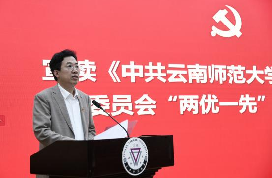 学院党委委员、院长王秀成同志宣读了《中共云南师范大学云南华文学院委员会关于表彰优秀共产党员、优秀党务工作者和先进党支部的决定》,表彰了李懋等14名同志为优秀共产党员,戴思远等5名同志为优秀党务工作者,教职工第三党支部为先进基层党组织。与会党委委员为获奖集体和个人颁奖。
