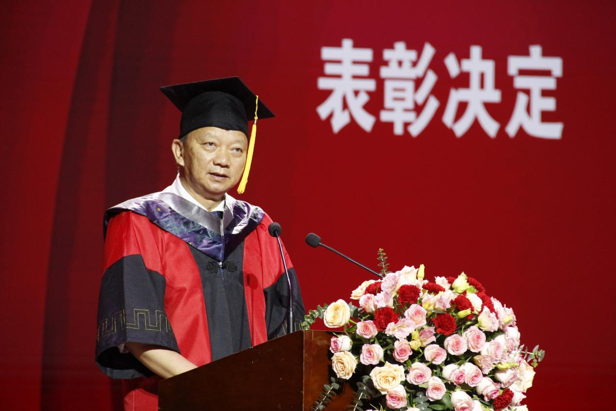 李宏宣读了省级优秀毕业生、校级优秀毕业生表彰决定。97名“荣誉学士”称号获得者代表,省级优秀毕业生代表、校级优秀毕业生代表依次上台领取获奖证书。