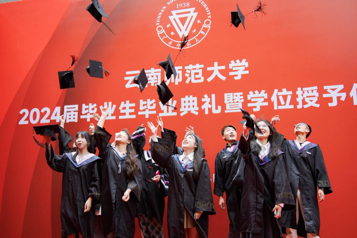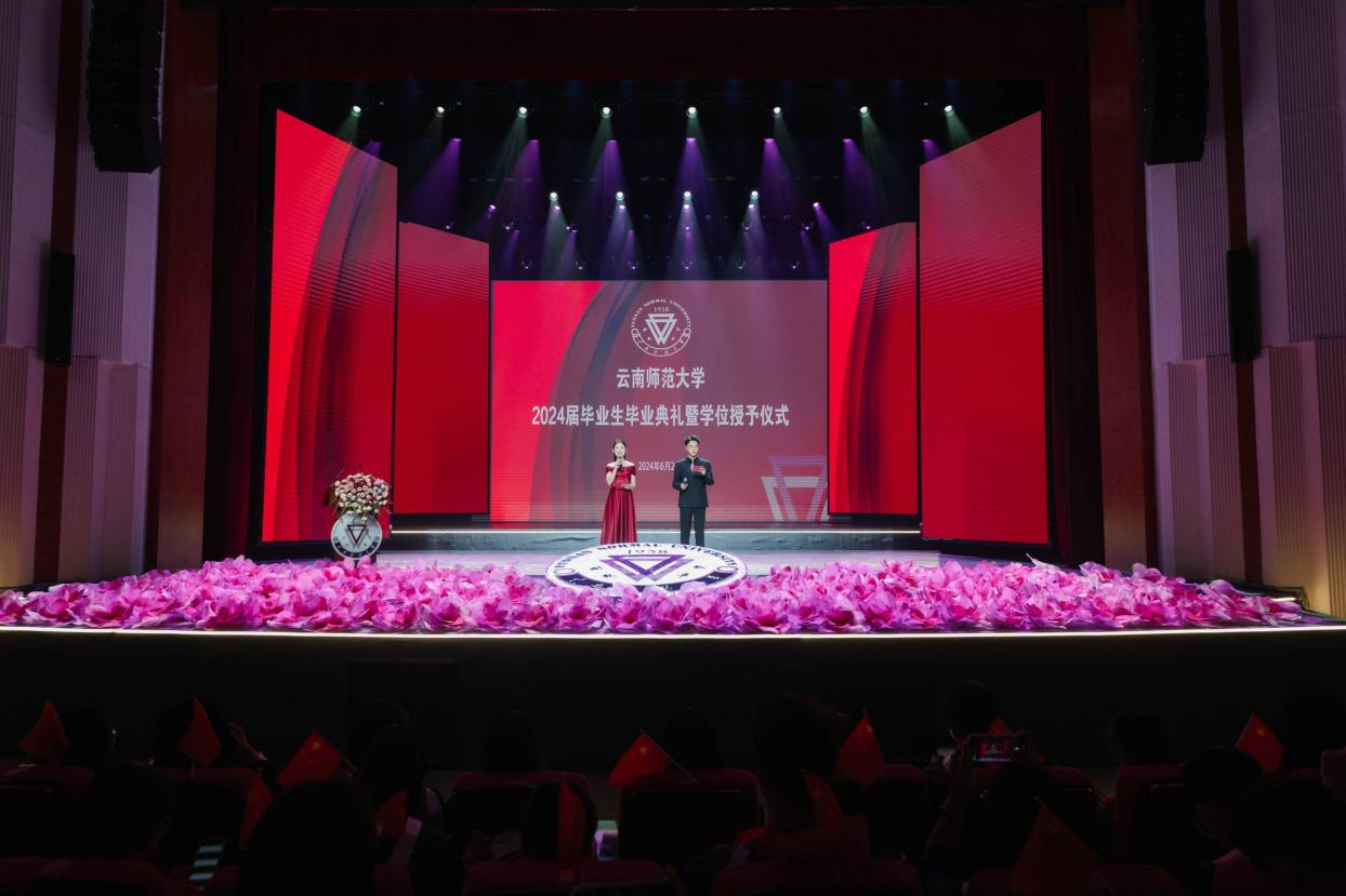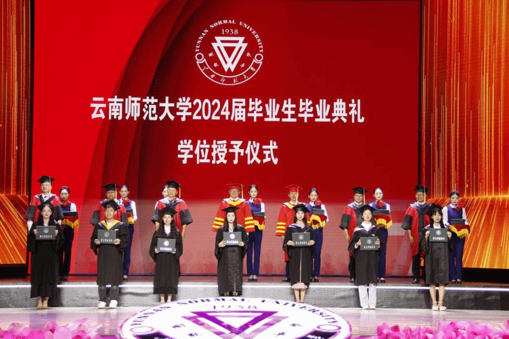 盛夏的师大,阳光明媚,绿意盎然。弥漫在校园里的百合花香,仿佛在为毕业生们送上离别的祝福。6月24日下午,云南师范大学毕业生代表汇聚明德5号楼演播厅,参加2024届毕业生毕业典礼暨学位授予仪式。