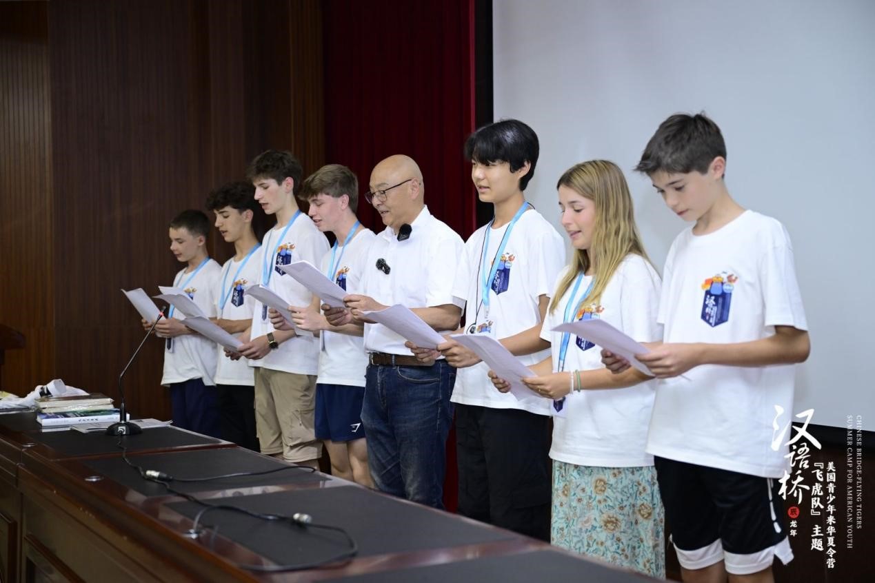 活动最后,飞虎后人高德敏带领美国青年学子共同朗诵了一首诗歌《我们生死与共》,表达了对飞虎队员的敬仰之情。他还向美国学生赠送了《飞虎月亮花》一书以及飞虎队文化衫、音乐画册等文创纪念品。