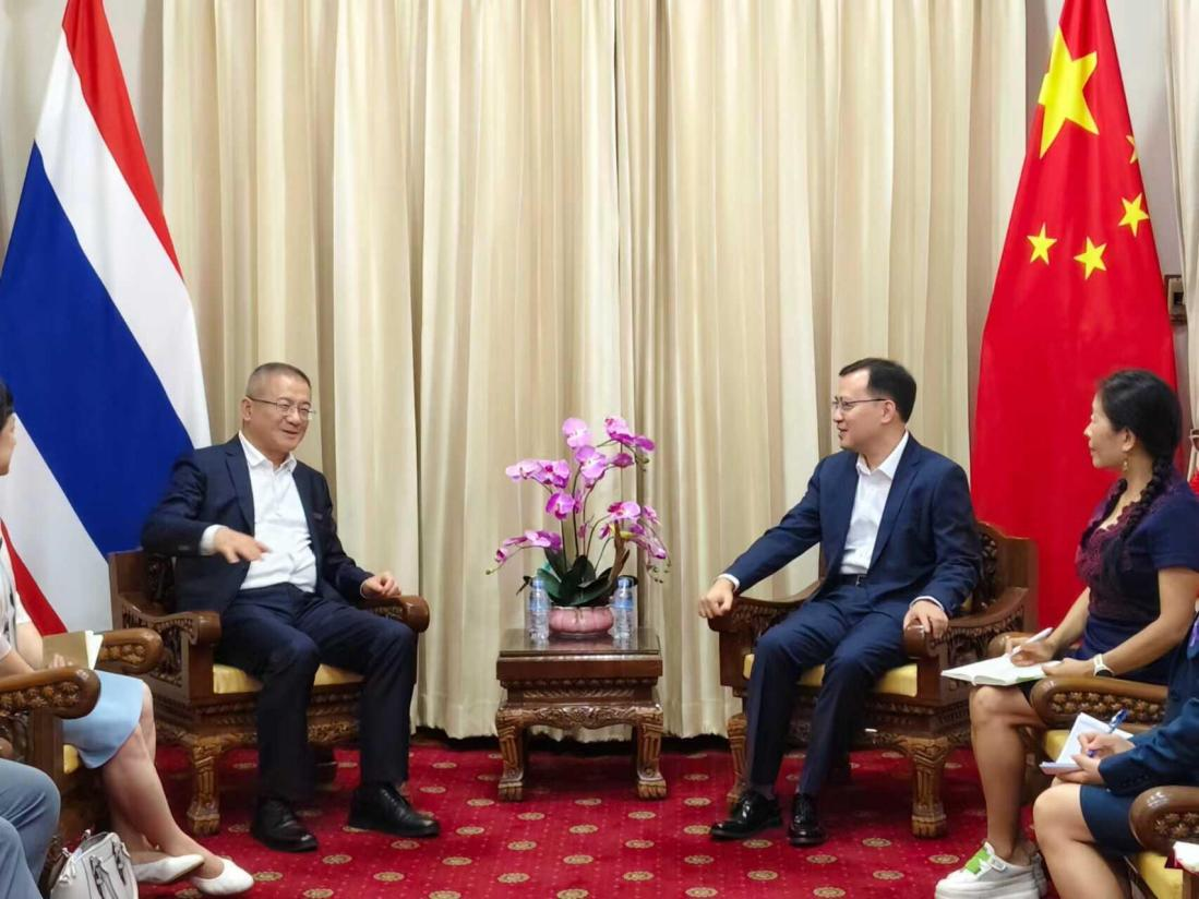 7月5日下午,校党委书记张祖武一行在泰国清迈大学访问期间,赴中国驻清迈总领事馆进行拜访。总领事陈海平会见了学校代表团一行。