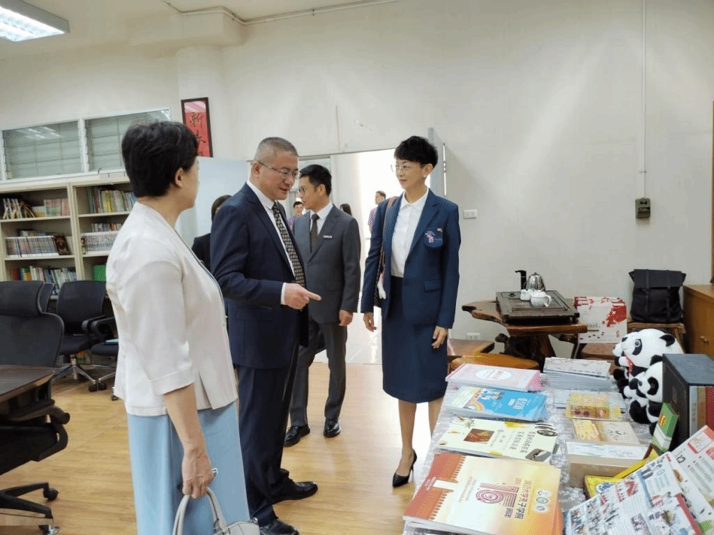 张祖武一行实地参观了清迈大学孔子学院办学场地,与孔院教师进行座谈交流。孔院中方院长连晨、泰方院长李雄英先后汇报了学院的历史沿革和近年建设发展情况。随行的云南华文学院党委书记和雪莲、科技处副处长冯小波、外国语学院副院长杨叶华先后发言,对孔院教师在泰国的工作生活情况进行了深入了解,关心志愿者教师的职业发展,对孔院继续发挥好两国两校友好交流、合作共赢桥梁纽带作用提出了建设性意见。孔院公派教师张小帆、本土教师徐丽英分享了各自的工作经历和感受。