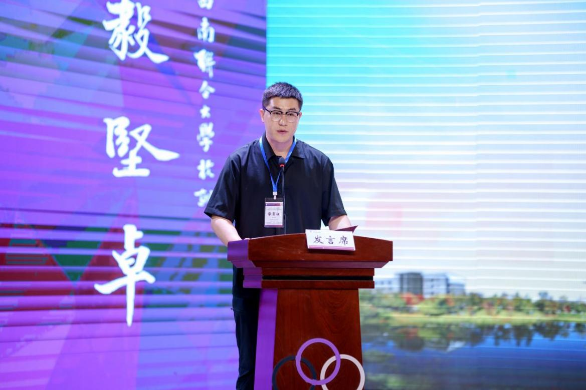 武定一中黄亚伟老师代表学员作表态发言,他感谢云南师范大学为各校提供了宝贵的优质教育资源,在接下来的培训中,将珍惜机会,提高思想认识,坚决完成学习任务,严格遵守组织纪律,把学习、运用、提高作为参训目标,努力提高自身的专业素养,为教育事业贡献自己的一份力量。