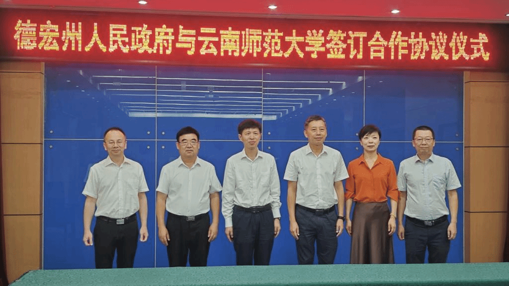 7月25日,云南师范大学与德宏州人民政府合作协议签订仪式在芒市举行。德宏州委副书记、州长卫岗,副州长雪琳以及州各相关部门负责人;我校校长胡金明、副校长武友德,校办、校友工作与国内合作办公室、乡村振兴办、基础教育集团、地理学部有关负责人以及校友代表参加仪式。