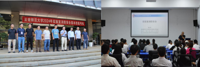 考核工作分两个阶段分别进行。第一阶段为实验室消防安全知识培训。国家一级注册消防工程师高卫东为实验人员开展实验室消防安全讲座,高卫东以历年高校实验室安全事故案例和统计数据为依据,详细介绍了实验室常见火灾隐患,分析了各种事故发生的原因,重点讲解了人防、物防、技防等实验室火灾预防知识和技能,希望同学们提高消防安全意识、谨遵实验室安全规定、谨防消防安全事故。