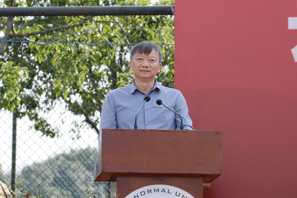 胡金明在讲话中向承训部队全体教官、精心组织军训工作的校领导和各部门相关负责人,以及全体带训教师致以感谢和敬意,向顺利完成军训任务的同学致以问候和祝贺。他指出,军训是青年学生接受国防教育的基本形式,对于加强国防后备力量建设、激发青年学生的爱国热情、培养艰苦奋斗和吃苦耐劳的精神具有重要意义。“告别迷彩绿,你们将开启精彩纷呈又紧张充实的多彩大学生活。”胡金明希望同学们尽快融入并爱上云南师范大学这个大家庭,学习并秉承西南联大“刚毅坚卓”的校训精神,用爱和智慧绘就美丽人生和云南师范大学的华美篇章。