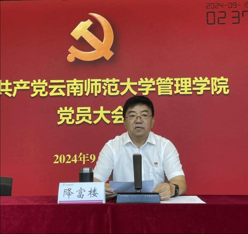 9月19日,中国共产党云南师范大学管理学院党员大会在一二•一校区召开。党委副书记降富楼同志,党委组织部蔡文华同志出席大会,学院领导班子及师生正式党员共计130人参加会议。会议由学院党委书记李正升同志主持。