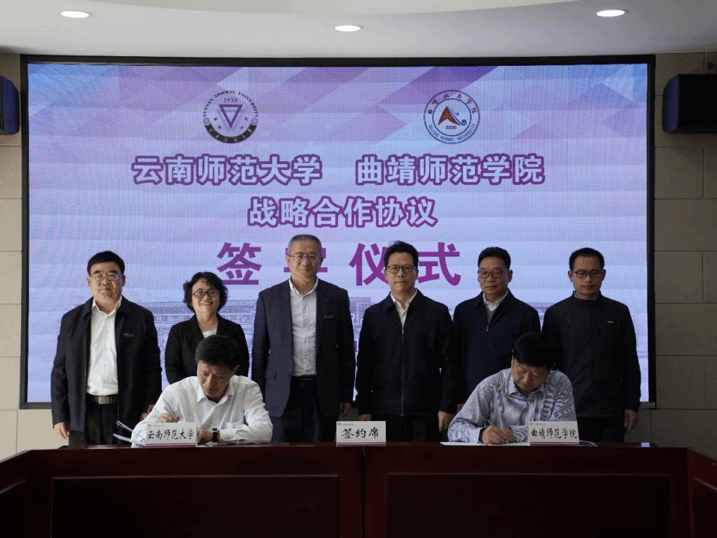 在与会人员的共同见证下,胡金明与全洪涛共同签署了《云南师范大学 曲靖师范学院 战略合作协议》。