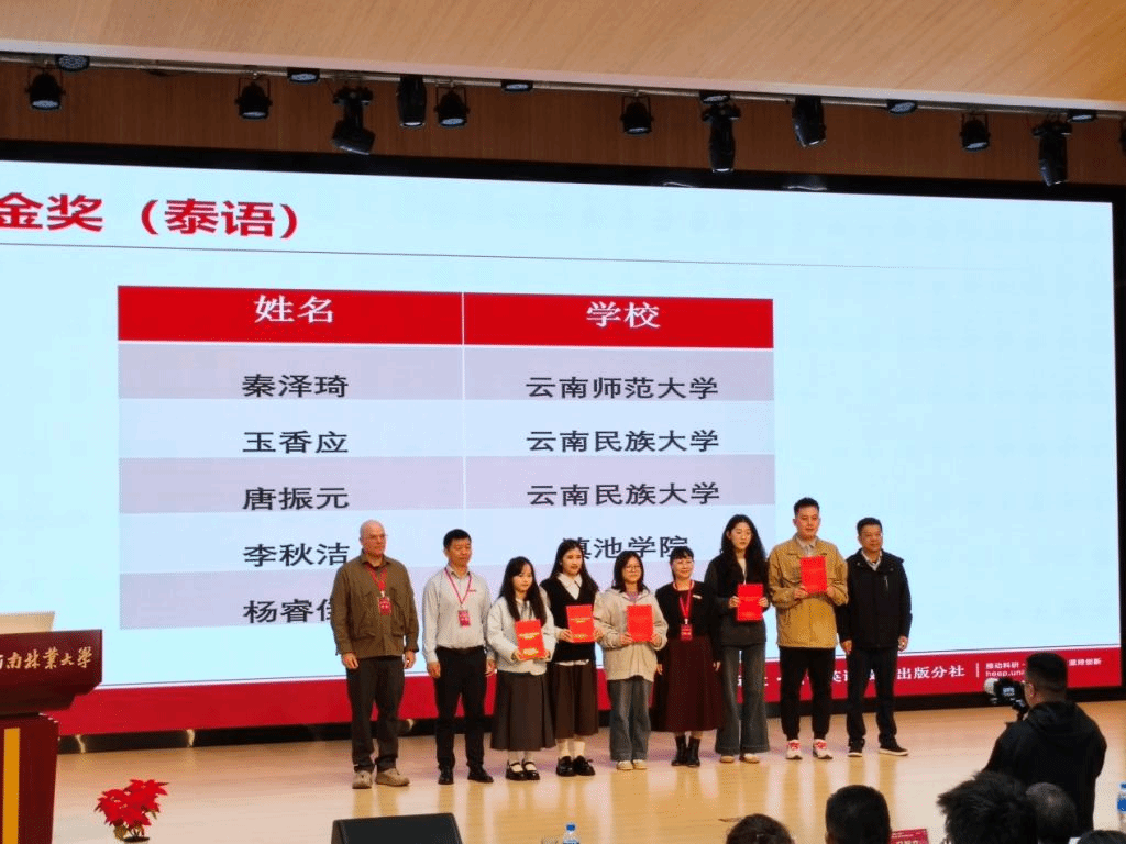 11月1日,“外研社·国才杯”“理解当代中国”全国大学生外语能力大赛云南省赛区决赛在西南林业大学落下帷幕。本次比赛由云南省教育厅和云南省外国语言文学类专业教学指导委员会共同主办,旨在推动高校外语教学改革,培育具有国际视野的外语人才,促进中国文化在国际舞台上的传播与理解。华文学院越南语、泰语专业学生在比赛中获得“三金一银”的好成绩。