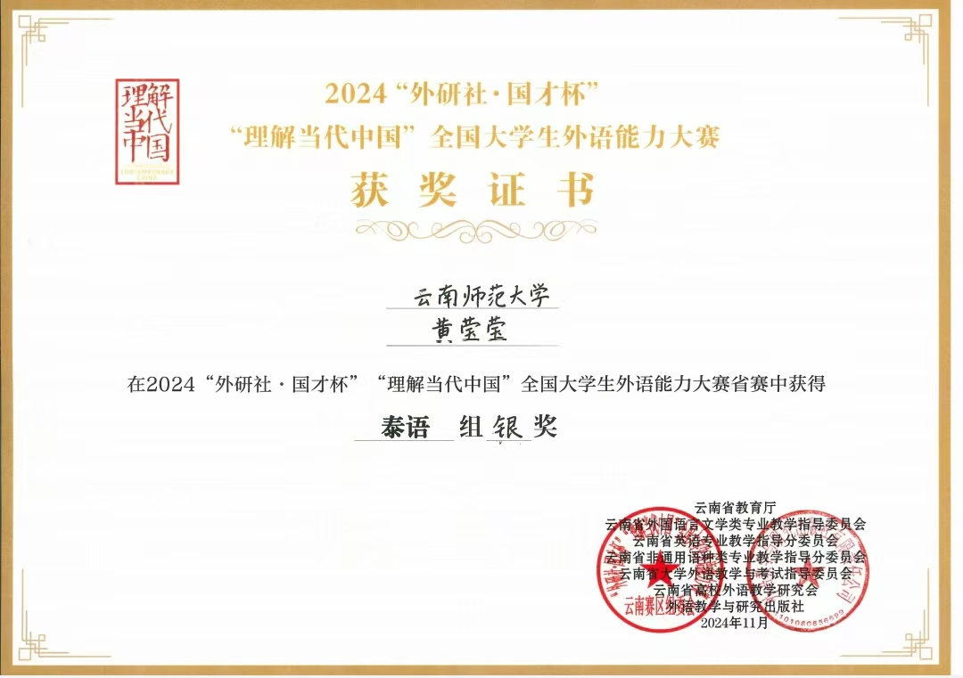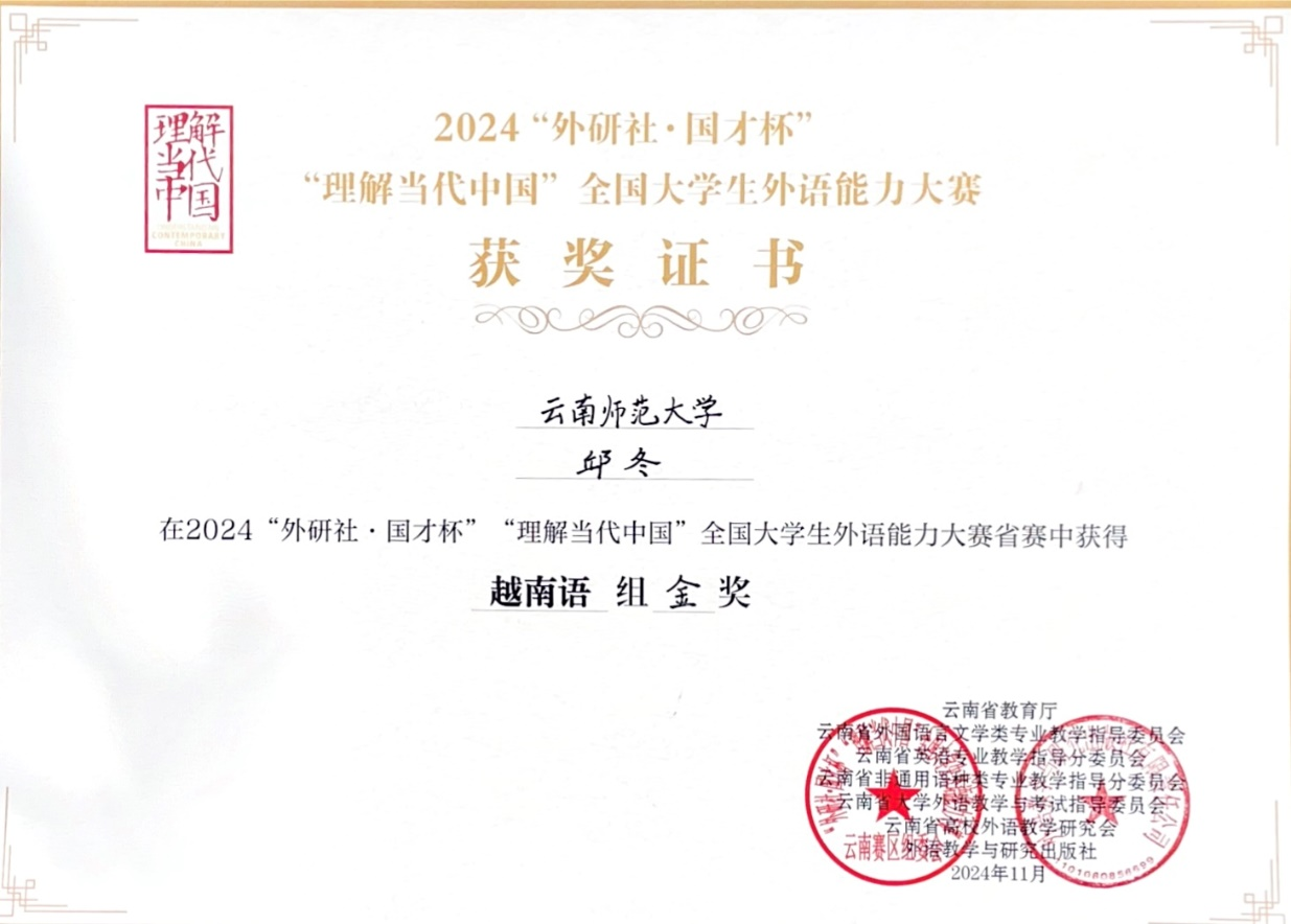 云南华文学院学子在2024“外研社•国才杯”“理解当代中国”全国大学生外语能力大赛中再创佳绩