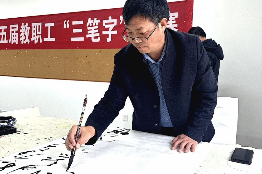毛笔字比赛现场,参赛选手们挥毫泼墨、笔走龙蛇,有的行云流水,一气呵成;有的自然舒展,运笔秀巧。一幅幅精美的书法作品跃然纸上。