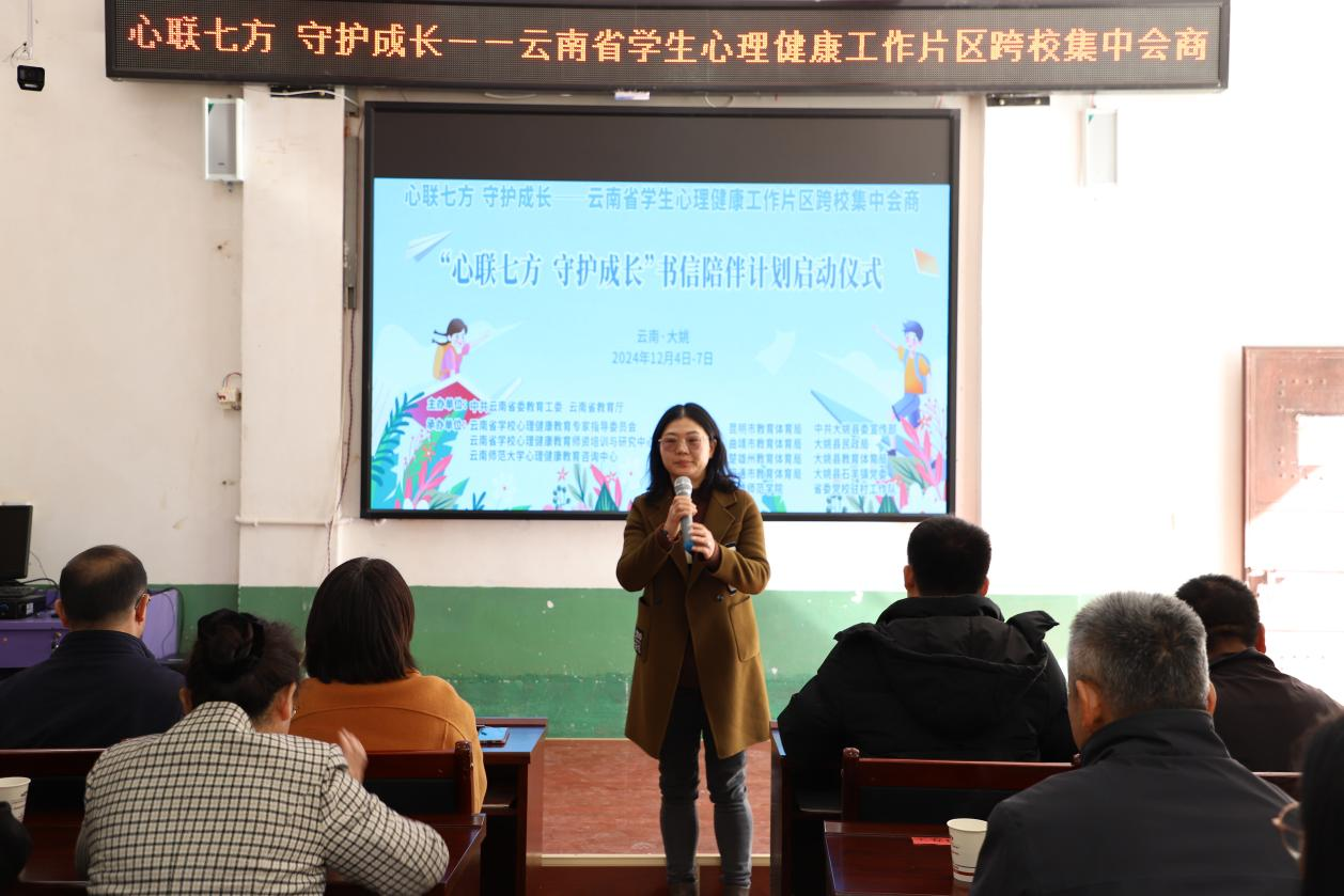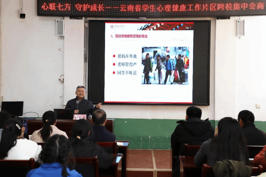为进一步服务片区内学校心理健康教育工作,构建多方联动的心理育人格局,12月4日至7日,“心联七方 守护成长”云南省学生心理健康工作片区跨校集中会商在楚雄彝族自治州大姚县石羊镇举办。本次会商由云南省委教育工委、云南省教育厅主办,云南省学校心理健康工作专家指导委员会秘书处(云南师范大学)、云南省学校心理健康教育师资培训与研究中心、云南师范大学心理健康教育咨询中心承办,昆明市、曲靖市、楚雄州、昭通市、大姚县等多地教育体育局,大姚县委宣传部、大姚县民政局、大姚县石羊镇党委、省委党校驻村工作队、楚雄师范学院等单位协办。大姚县民政局党组成员、副局长张兰,大姚县民政局社会事务和儿童福利股副股长施剑平,大姚县教育体育局青少年活动中心主任郭丽蓉,石羊镇党委副书记李俊聪,省内外心理健康教育专家,云南省学校心理健康工作专家指导委员会委员代表,心理健康教育专兼职教师及学生代表等150余人现场参与,近4000人线上同步参会。