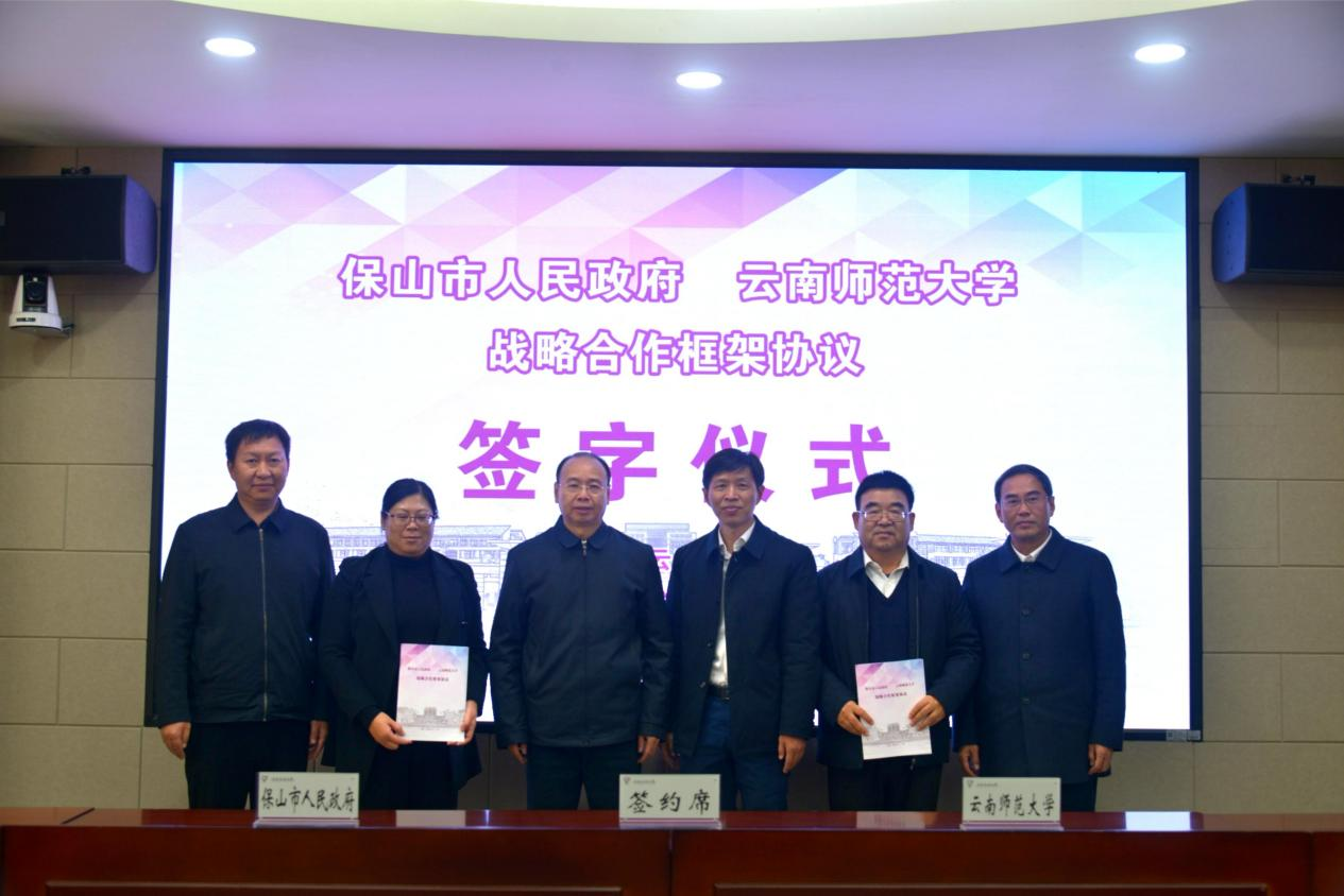 在与会人员的共同见证下,武友德与龚翠莲共同签署了《保山市人民政府 云南师范大学 战略合作框架协议》。