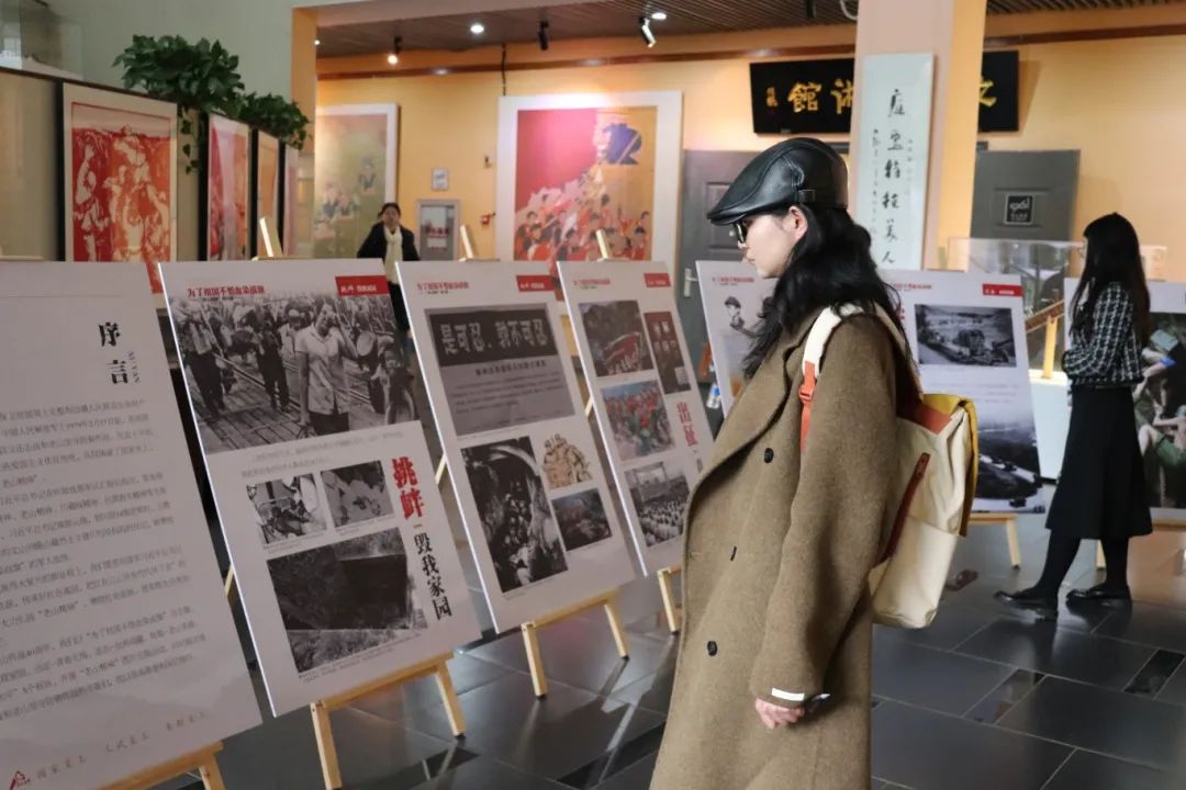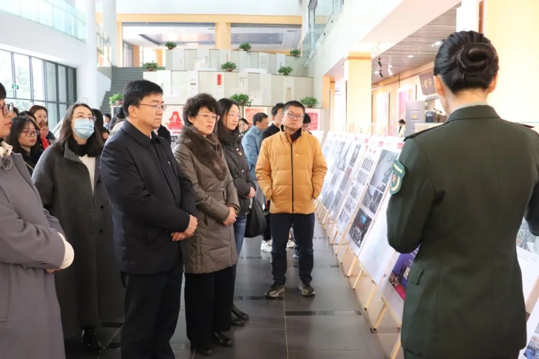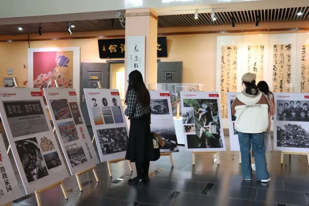 思政课前,参加活动的领导、师生代表参观了“老山精神”图片展。