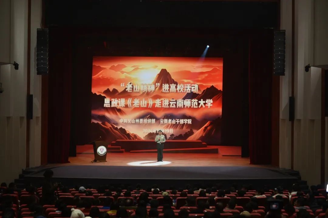 为传承弘扬“老山精神”,赓续红色血脉,12月19日,云南老山干部学院“老山精神进高校”活动第四站在云南师范大学呈贡校区明德5号楼开讲。云南老山干部学院专职副院长、文山州委党校常务副校长杨金花,文山州委党校副校长程娟,我校党委副书记降富楼,相关职能部门负责人,马克思主义学院党委书记,各学院(学部)党委副书记,思政课教师及学生代表共计600余人参加活动。