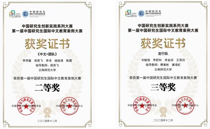 12月20日至22日,第一届中国研究生国际中文教育案例大赛总决赛在华东师范大学举行。本次大赛由教育部学位管理与研究生教育司指导,中国学位与研究生教育学会、中国科协青少年科技中心主办。大赛分为初赛、决赛和冠军争夺赛三个阶段,开设“国际中文教育的新标准”“国际中文教育的新技术”“国际中文教育的新应用”三个赛道。全国287所培养单位的1460支研究生队伍报名参赛,有37家培养单位的60支队伍入围总决赛。云南师范大学获优秀组织奖,国际中文教育学院两个学生团队分获二等奖、三等奖。