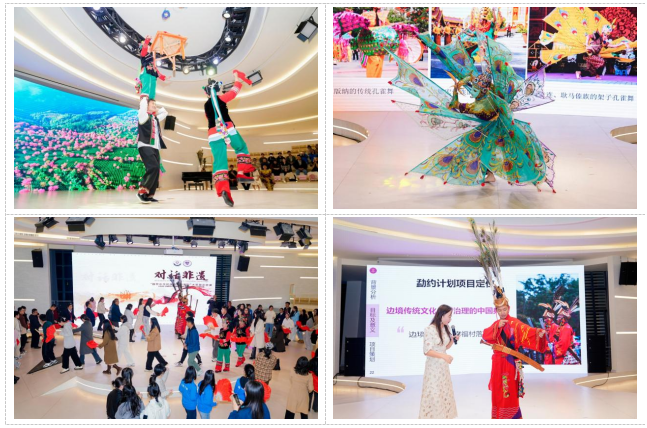 在“对话·非遗”展示环节,地理学部教授陈亚颦围绕“食物的身体形塑与传承--南涧彝族跳菜”“大传统与小传统的文化共融-从kinnara到孔雀舞的流变”“非线性有序、动态状中和的生态美学—景颇族目瑙纵歌”三个主题作非遗活动学术解说。非遗传承人鲁丽华、依满相、岳胜昆与德宏州陇川县勐约乡党委书记石德福等特邀嘉宾进行现场展演,让思政元素有形有感有效地展现,讲好有温度、有深度的中华民族共同体故事。