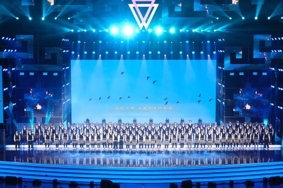 青春组歌《绿水青山》《青苹果乐园》《和未来有约》,音动心弦,歌声悠扬,洋溢着青春的气息,传递着大家对美好未来的憧憬与期待。