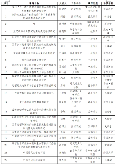 国家社会科学基金项目是衡量高校哲学社会科学发展水平及科研实力的关键指标,也是评价高校科研能力的重要标准。我校高度重视国家社会科学基金项目申报工作,多措并举激励科研人员潜心研究,推动学校哲学社会科学的创新发展,促进具有学术传承与创新价值的高质量研究成果的产出。学校将持续致力于提升有组织科研水平,坚守服务国家重大战略和云南经济社会发展需求的核心目标,增强在国家和区域经济社会发展中的参与度、话语权和贡献力。