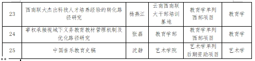 近日,全国哲学社会科学工作办公室公布了2024年度国家社科基金重大项目、年度项目、单列项目、专项项目、后期资助项目的立项名单。从立项类别上看,我校今年在重大项目、年度项目、单列项目和专项项目上均取得较好成绩。其中,重大项目获立1项;年度项目中有1个重点项目、8个一般项目、3个青年项目和6个西部项目获批立项;单列和专项项目方面,获立教育学单列项目2项,军事学单列项目1项,中华学术外译项目2项,后期资助项目立项1项。全年累计获立国家社会科学基金项目25项(名单附后)。