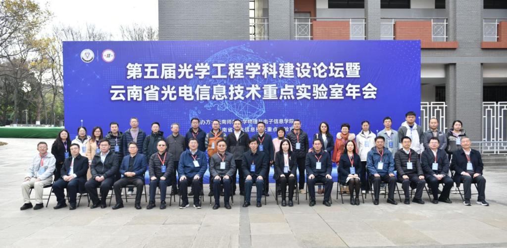 1月4日,由云南师范大学物理与电子信息学院主办的第五届光学工程学科建设论坛暨云南省光电信息技术重点实验室年会在呈贡校区开幕。论坛回顾总结了重点实验室一年来的建设发展成效,探讨光学工程学科高质量发展和人才培养,交流研讨光电信息技术领域发展新方向、新业态。开幕式由云南师范大学副校长陈飞教授主持。