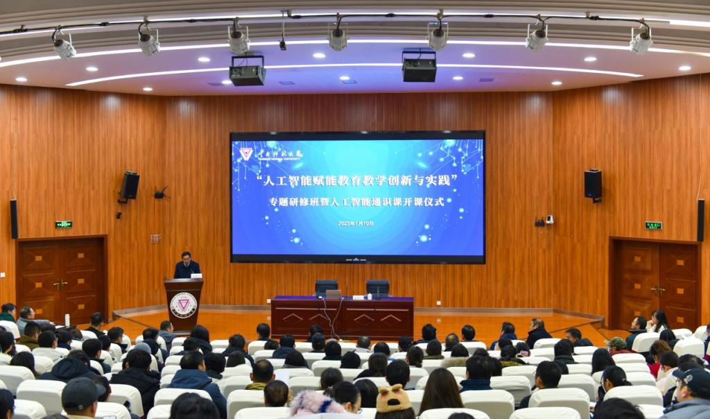 为贯彻落实国家关于推进教育现代化的战略部署,加快人工智能在高等教育领域的创新应用,1月10日,我校举办“人工智能赋能教育教学创新与实践”专题研修班暨人工智能通识课开课仪式。校长胡金明,副校长陈正权、陈飞,职能部门、学院(学部)负责人,各学科负责人、专业负责人、骨干教师、青年教师代表以及部分职能部门管理人员共417人参与研修。