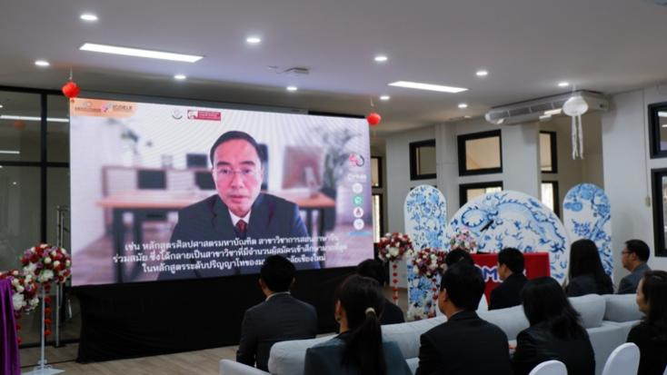清迈大学副校长Rattasit Sukhahuta教授、云南师范大学副校长陈飞教授、泰国数智教育与学习工程协会主席Niwat Srisawasdi助理教授、清迈大学多元与跨学科学院副院长Wantida Chaiyana副教授、天津大学国际教育学院副院长杜修平教授、清迈大学孔子学院连晨院长出席开幕式。与会嘉宾围绕数智时代汉语国际教育的创新发展路径展开探讨,共同擘画学科发展新蓝图。