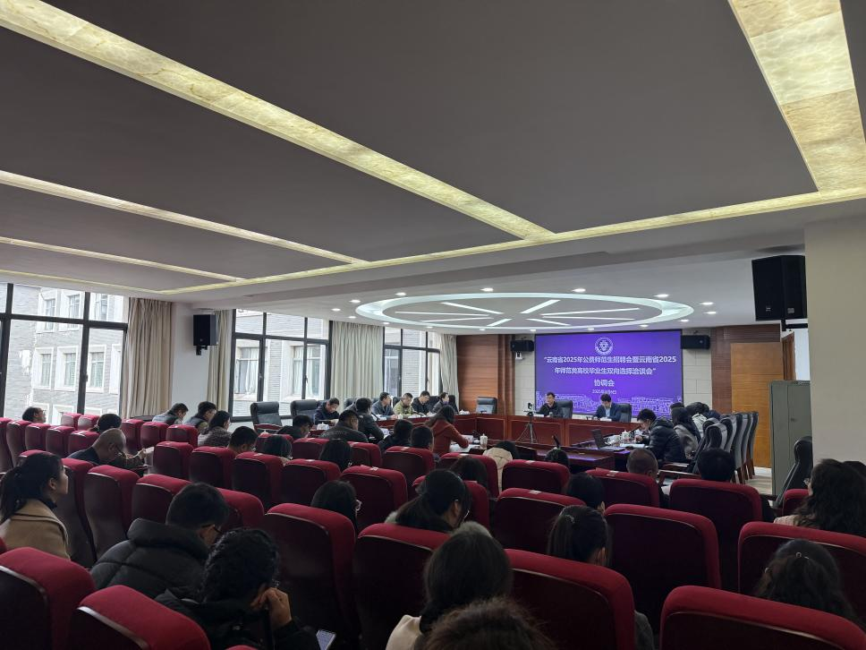 3月6日上午,我校在呈贡校区行政楼340会议室召开“云南省2025年公费师范生招聘会暨师范类高校毕业生洽谈会”协调会。副校长甘健侯,相关职能部门负责人,各学院(学部)党委副书记、辅导员,就业指导服务中心全体人员参加会议。会议由甘健侯主持。