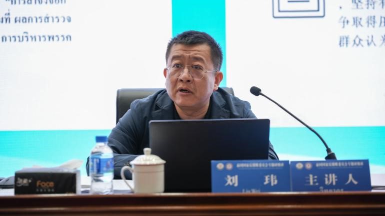 3月3日,研修班开班式在我校呈贡校区举行。云南省监委委员路晓琨,云南师范大学党委书记张祖武,云南师范大学校长、云南纪检监察学院院长胡金明,泰国驻昆明总领事帕薇婉,泰国参训团团长苏波斯特·斯林甘芒,云南师范大学党委常委、纪委书记、监察专员孙剑,云南省纪委监委国际合作室相关领导等出席仪式。开班仪式由胡金明主持。