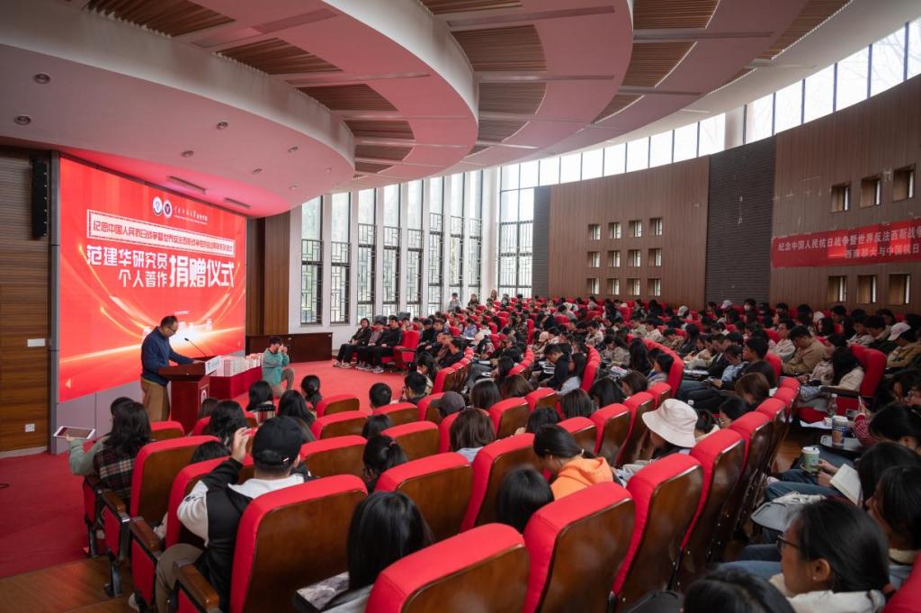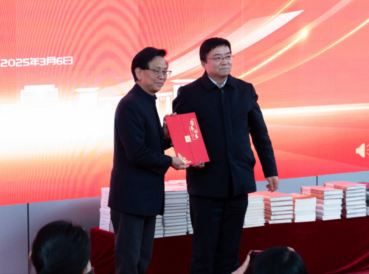 范建华回顾了自己的求学经历,表达了对母校的感激之情,希望此次捐赠的著作能够助力历史学院学术研究、教学工作。降富楼肯定了范建华心系母校、支持学术发展的善举,他以“三个铭记”为主题,寄语广大师生铭记报国初心、铭记信仰传承、铭记建设未来。