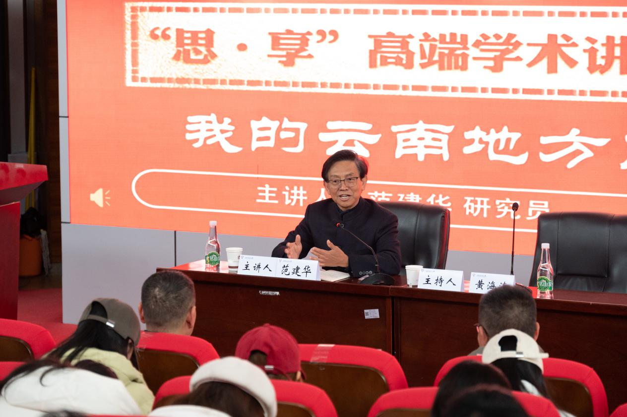捐赠仪式后,范建华为学院师生带来题为“我的云南地方历史分期观”的学术讲座,以独特的研究视角系统阐述了云南地方历史的分期体系。范建华深入剖析了各历史时期的文化特征,强调了云南地方文化的多样性及其在中华民族多元一体格局中的独特地位,为师生们生动展现了云南文化历史脉络。