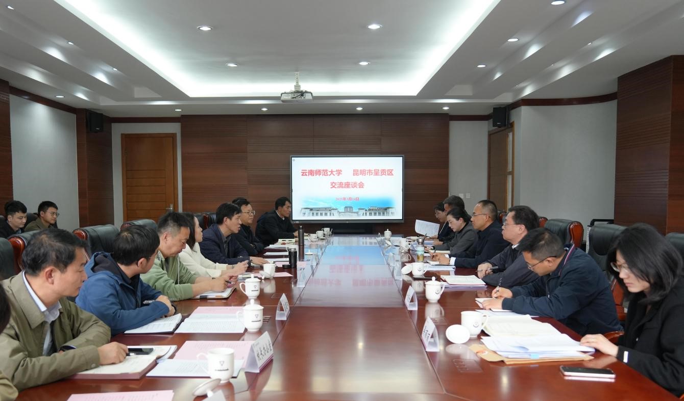 3月14日,呈贡区委书记陈净、副书记何松、副区长龙晶晶一行到我校开展校地融合发展座谈交流,校长胡金明、副校长孟庆红参加座谈。