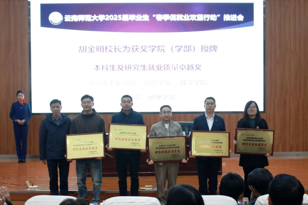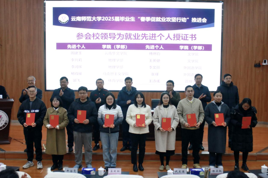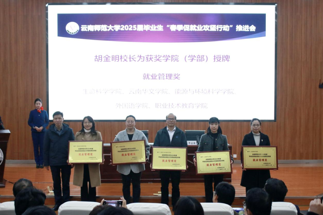 3月21日下午,我校在呈贡校区汇学2栋101报告厅召开“春季促就业攻坚行动”推进会。全体在家校领导,学校中层副职及以上实职干部,受表彰的集体和个人,毕业班班主任,辅导员,就业指导服务中心全体人员参会。会议由校党委副书记降富楼主持。