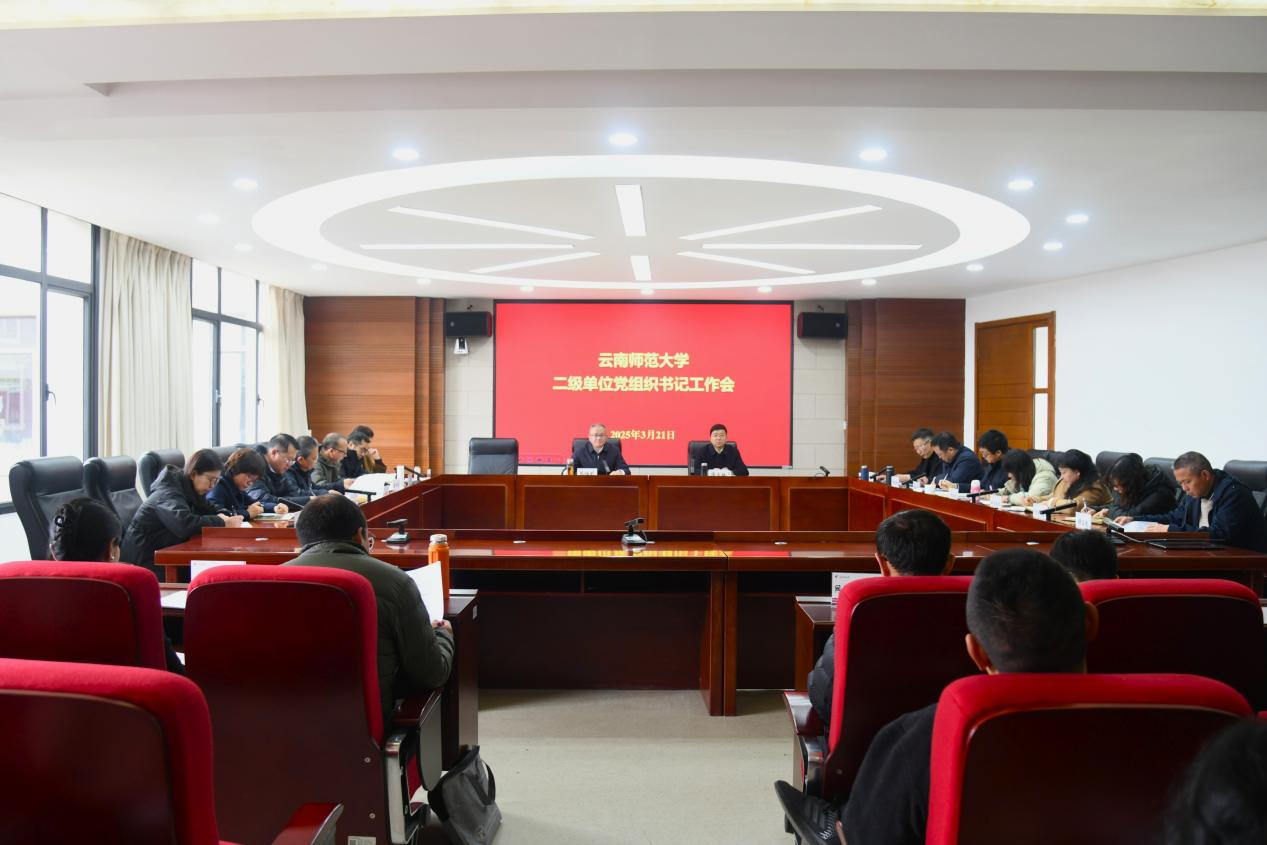 3月21日,学校召开二级单位党组织书记工作会议,传达学习近期中央、省委系列重要会议精神,并对近期党建工作作出安排。会议由校党委书记张祖武主持。校党委副书记降富楼,各二级单位党组织书记、相关职能部门主要负责人参会。