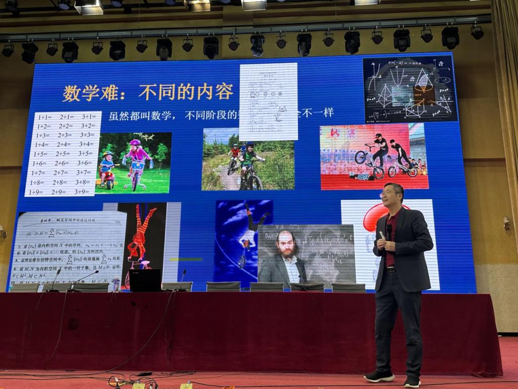 在近两小时的讲座中,袁亚湘院士立足“数学之美、数学之真、数学之趣、数学之难、数学之慧”五大维度,通过生活实例与专业理论相结合的讲解方式,系统解构数学学科的本质特征。他强调了数学作为基础学科的重要地位:“数学不仅是打开科学之门的钥匙,更是培养逻辑思维、创新能力的核心素养。”他深入浅出的阐释,让在场师生深刻体会到数学学科的独特魅力。