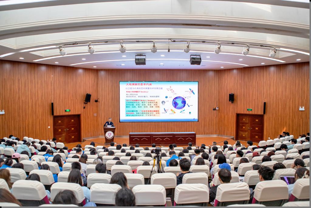 本次报告题为“漫步时空隧道—精密大地测量与时空基准”。孙和平院士从时空基本概念出发,系统阐释了精密大地测量学的科学内涵与战略价值,指出其在深空探测、国家安全和经济发展中具有不可替代的关键作用。通过剖析时空基准的参考系统理论架构与量子测量技术革新,揭示了学科面临的机遇与挑战,为构建新一代时空基准体系指明方向。孙院士分享的个人研究经历与学术贡献,让大家感受到了一位科研工作者的执着与坚守,他的成长感悟,激励着现场的每一位师生,在追求科学真理的道路上奋勇前行。
