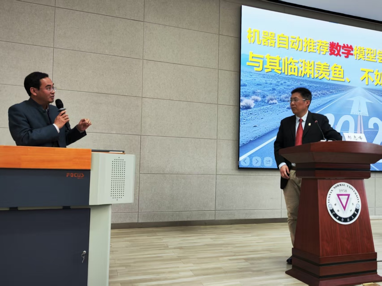 4月12日上午,汕头大学校长郝志峰教授应邀做客“武之讲坛”,以“人工智能及机器自动推荐数学模型的探索”为题作学术报告,报告在同析4栋201报告厅举行。数学学院院长刘祥清、副院长黄斌超,200余名师生共同聆听报告。报告由云南师范大学副校长陈飞主持。